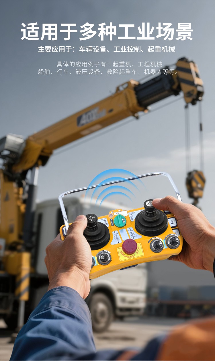 產(chǎn)品廣泛應(yīng)用于機(jī)械、建筑、冶金、汽車(chē)、化工、鐵路、施工等可實(shí)現(xiàn)遙控操作的設(shè)備及場(chǎng)所。
