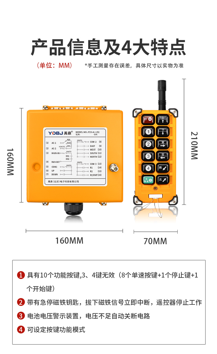 產(chǎn)品廣泛應(yīng)用于機(jī)械、建筑、冶金、汽車、化工、鐵路、施工等可實(shí)現(xiàn)遙控操作的設(shè)備及場(chǎng)所。
