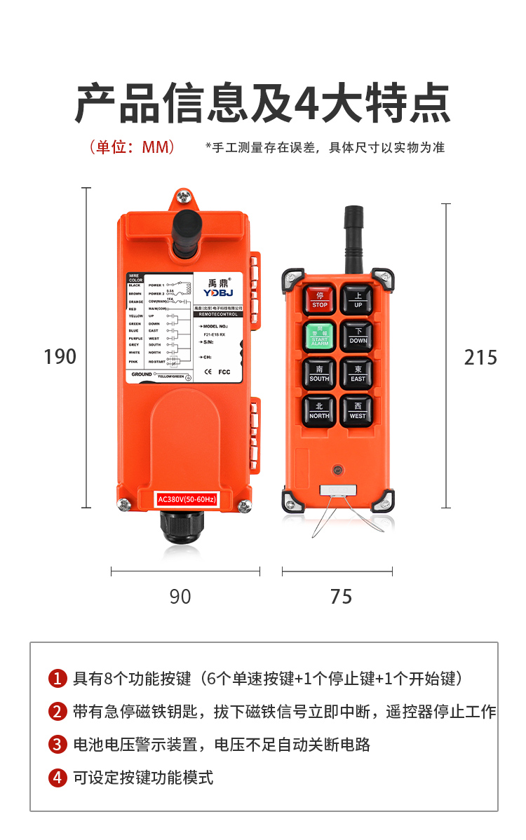 產(chǎn)品廣泛應(yīng)用于機(jī)械、建筑、冶金、汽車、化工、鐵路、施工等可實(shí)現(xiàn)遙控操作的設(shè)備及場所。