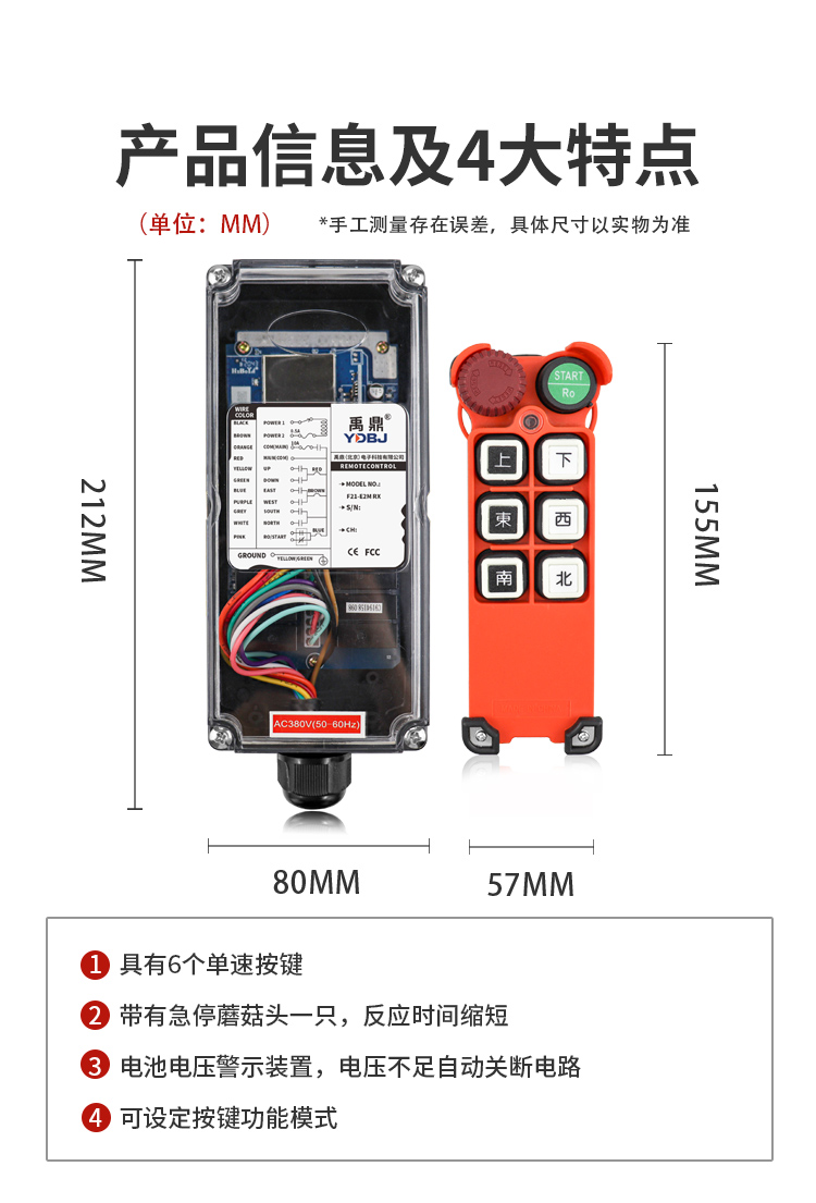 產(chǎn)品廣泛應(yīng)用于機(jī)械、建筑、冶金、汽車、化工、鐵路、施工等可實(shí)現(xiàn)遙控操作的設(shè)備及場(chǎng)所。