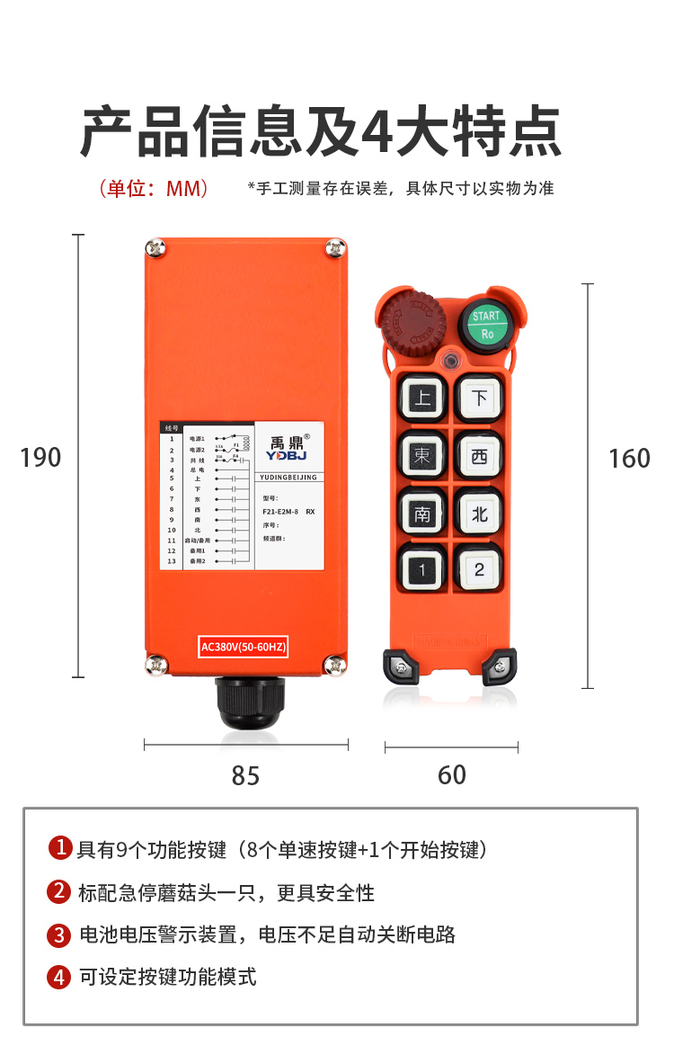產(chǎn)品廣泛應(yīng)用于機械、建筑、冶金、汽車、化工、鐵路、施工等可實現(xiàn)遙控操作的設(shè)備及場所。